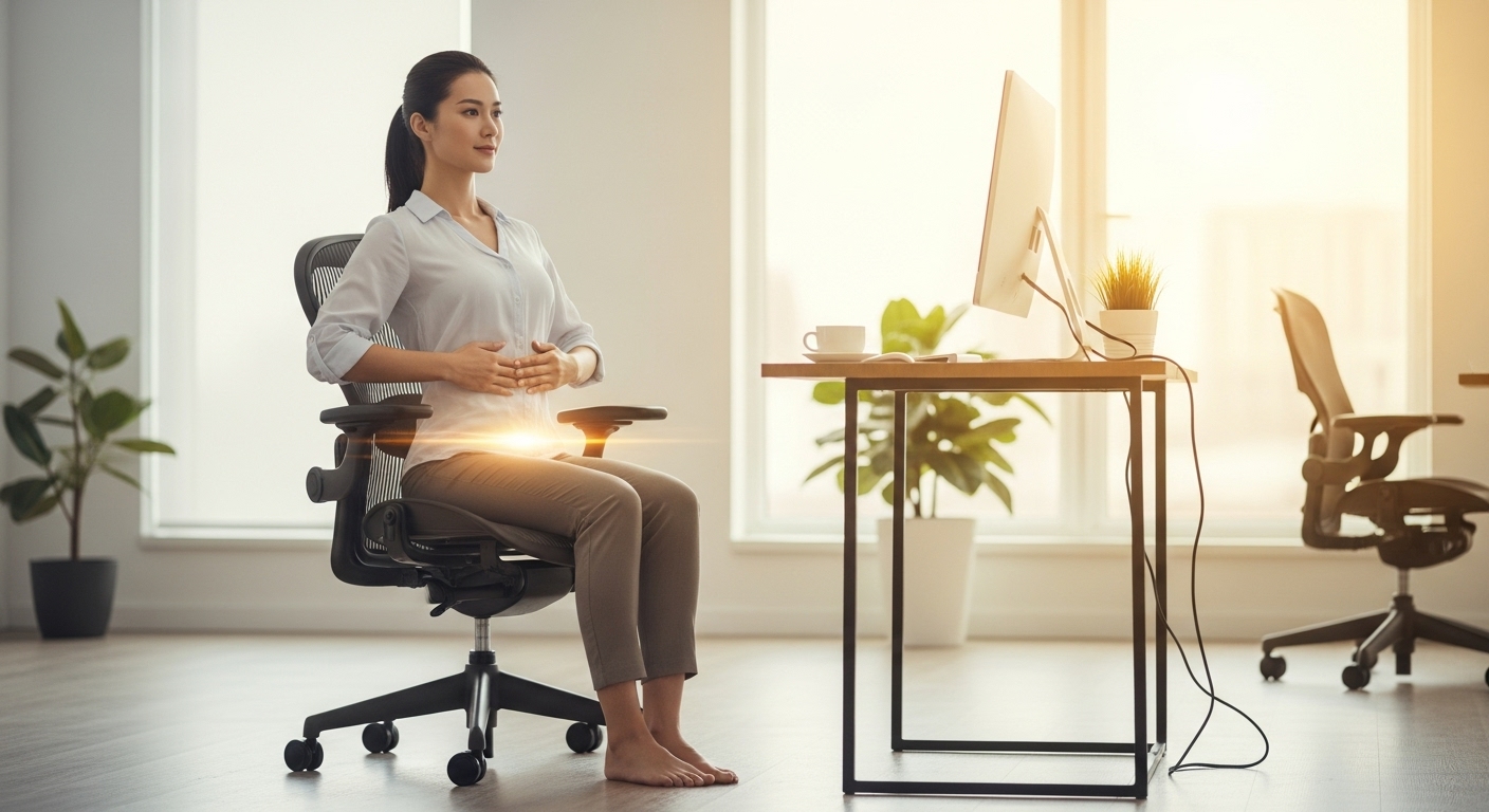 - 코어 의식하기: 업무 중에도 잠시 멈춰 아랫배를 살짝 당겨 코어 근육을 느껴봅니다. 마치 숨 쉴 때마다 코어가 함께 움직이는 상상을 해보세요.